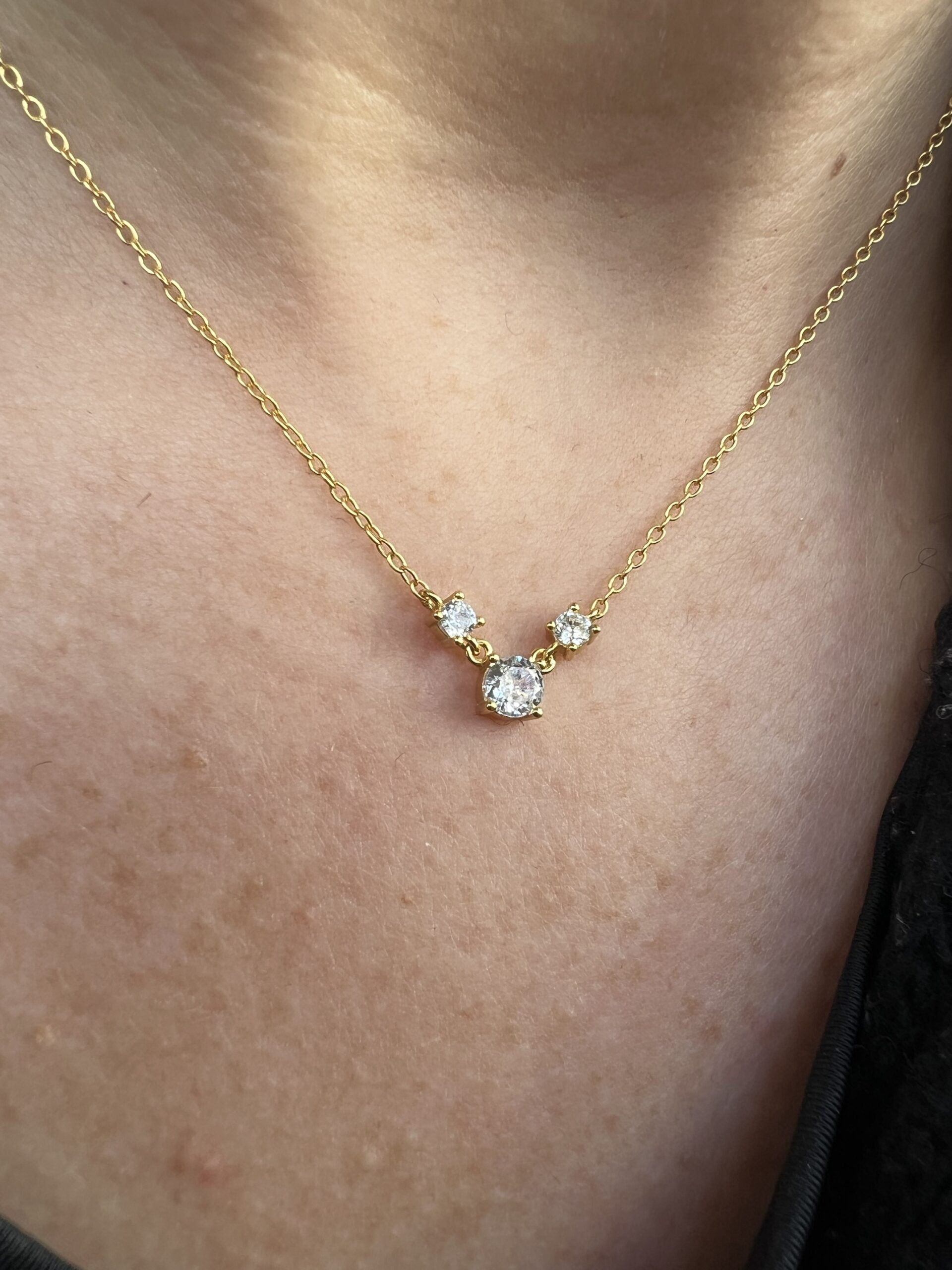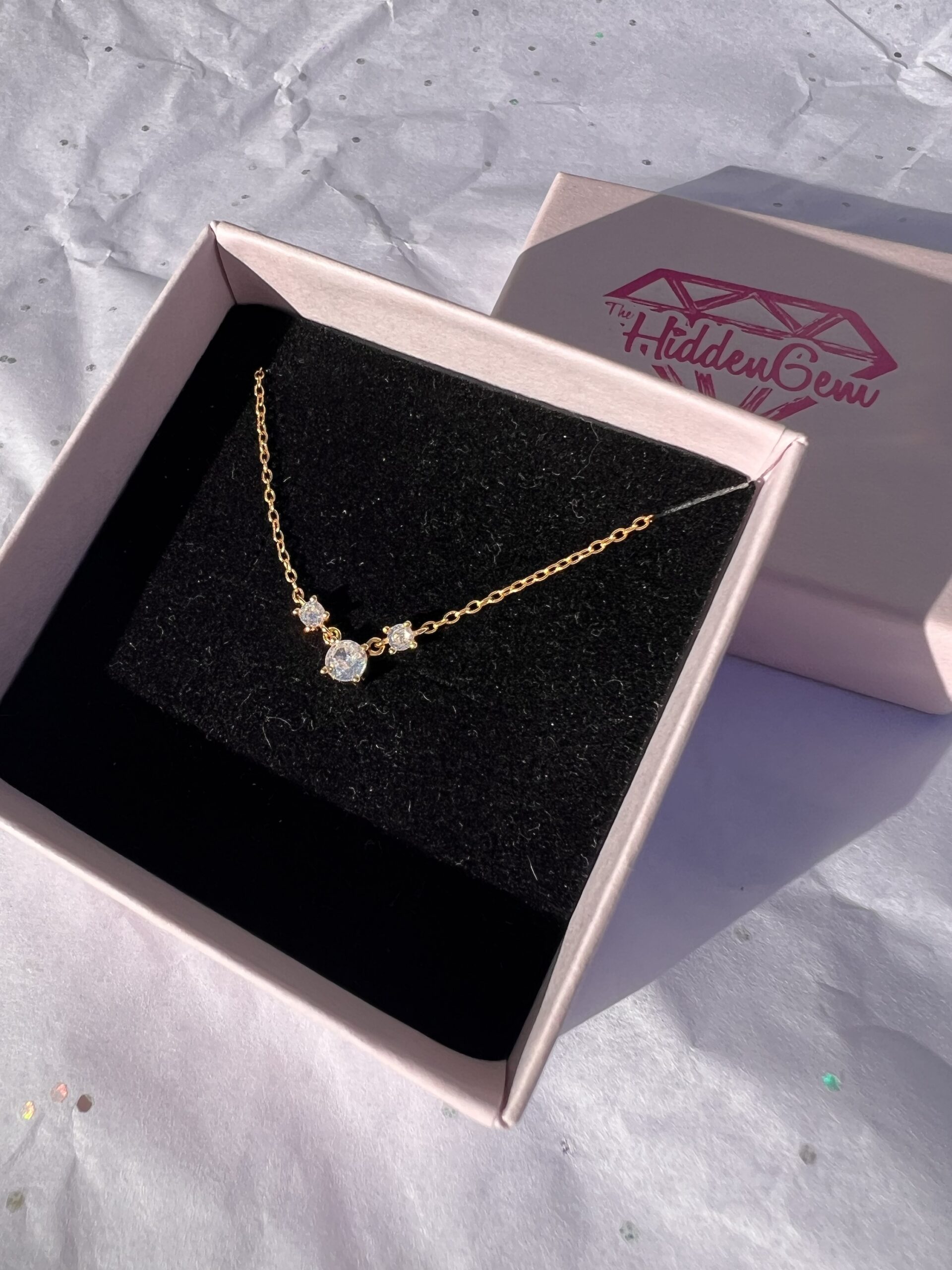 Whether worn for everyday elegance or reserved for special occasions, the Aurora Trio Spark Pendant brings a subtle yet captivating sparkle to any outfit.
